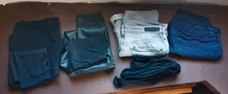Pantalones cómodos para maternidad. - 1 pantalón largo estilo vaquero negro (h&m) - 1 vaqueros largos (denim) - 1 pantalón azul largo (h&m) - 1 pantalón gris largo (denim) - 1 pantalón corto gris (denim) - 1 pantalón corto azul (h&m) - 1 leggins negro (corte inglés) - 1 malla transparente negra