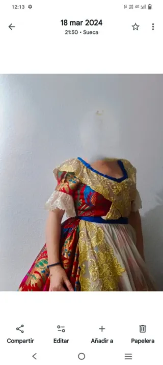 Traje de Fallera Mayor con sus complementos. Está en perfecto estado, prácticamente nuevo. BUENAS TARDES DISPONGO DE VARIOS TRAJES DE FALLERA MAYOR Y COMPLEMENTOS SE PUEDEN RETOCAR A MEDIDA Y PROBAR. PRECIO A NEGOCIAR POR PRIVADO. GRACIAS - Diseño con detalles dorados y multicolor. - Incluye banda y adornos. - Precio: 400€.
