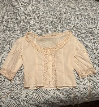 Camisa intima huertana beige con encaje talla S