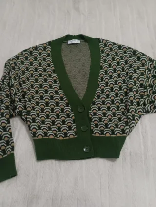 Rebeca corta con estampado geométrico. - Diseño de punto. - Cuello en V. - Cierre de botones.