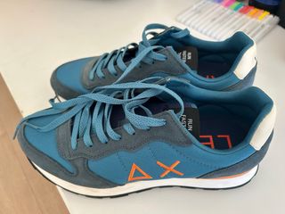 Zapatillas sin estrenar deportivas de la marca Sun68 con un diseño moderno y cómodo. NUNCA LAS HE USADO - Combinación de colores azul y gris. - Detalle de logo en la suela interior. - Inscripción RUN FASTER en la plantilla.