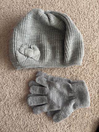 Conjunto de gorro y guantes de punto. - Gorro con detalle de lazo. - Guantes de talla única.