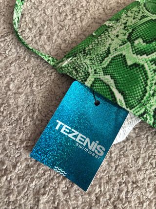 Parte de arriba de bikini con un llamativo estampado de serpiente en tonos verdes. Ideal para combinar. - Diseño triangular. - Tirantes ajustables.