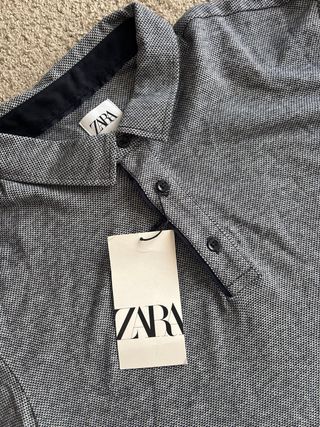 Polo de manga corta sin uso con cuello y botones. - Tejido con microestampado. - Cuello y puños en contraste.
