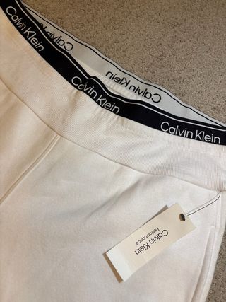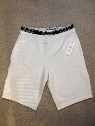 Chándal corto de Calvin Klein en color blanco. Perfecto para un look casual y cómodo. - Cintura elástica con logo. - Tejido suave al tacto. - Etiqueta original incluida.