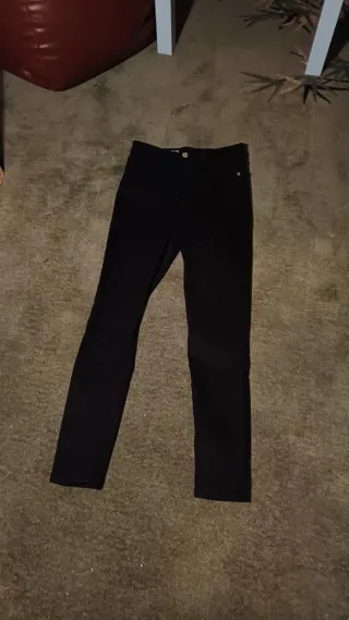 Pantalones ajustados de corte skinny. - Cintura alta. - Cierre de botón y cremallera. - Bolsillos delanteros y traseros.