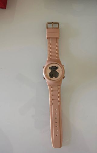 Reloj de la marca Tous con un diseño encantador. - Correa de silicona en tono rosa. - Detalles metálicos en dorado. - Esfera con el icónico oso de la marca.