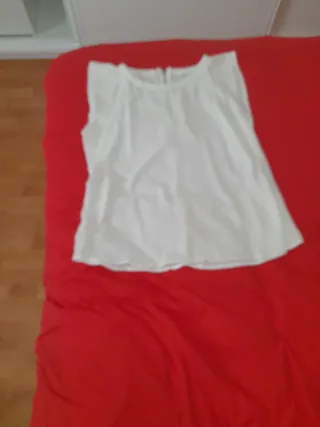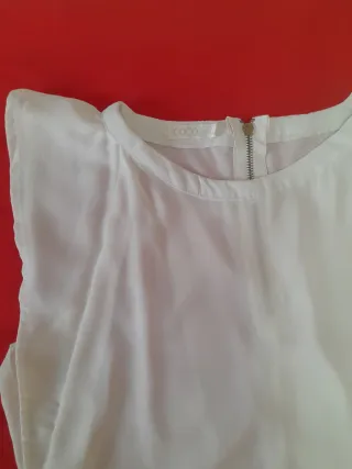 Camisa sin mangas de color blanco. Diseño moderno y versátil. - Cuello redondo. - Cierre de cremallera en la espalda. - Mangas cortas con detalle fruncido.