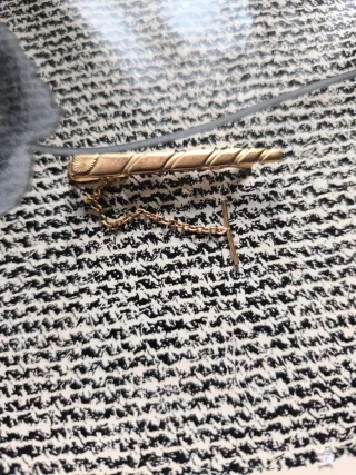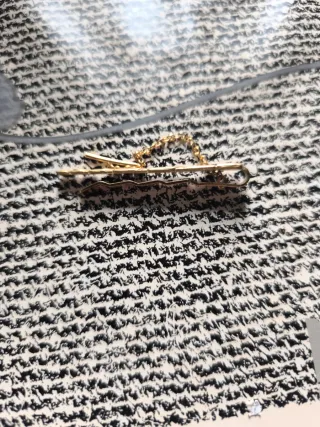 Elegante pisa corbatas con un diseño en espiral y detalles grabados.es de plata - Color oro. - Incluye una cadena para mayor seguridad. - Acabado brillante.