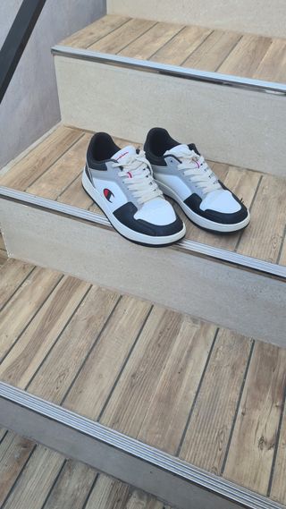 Zapatillas de la marca Champion con un diseño moderno y deportivo. - Combinación de colores negro, gris y blanco. - Cierre con cordones. - Detalle del logo de Champion en el lateral.