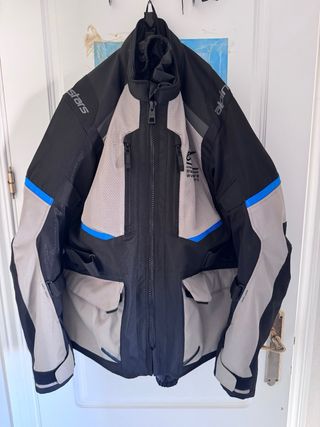 Chaqueta Alpinestars Andes Air Drystar® Negro / Gris / Azul Claro. Chaqueta de uso touring ideal para cualquier época del año. Confeccionada en malla 2D y poliéster que ofrece una óptima transpirabilidad. Membrana impermeable Drystar® desmontable. Ventilaciones ajustables en la zona del pecho. Protecciones Nucleon Flex Plus de Nivel 1 en codos y hombros, con refuerzos para una mayor resistencia a la abrasión. Predisposición para instalar airbag Tech-Air® 5 y Tech-Air® 3 (no incluido). Tiras ajustables en los brazos, puño y cadera para un mejor ajuste y comodidad. La vendo porque me la regalaron con la moto y no la utilizo