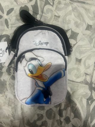 Bandolera con estampado de Donald de Disney. - Color gris con detalles en azul. - Cierre de cremallera. - Correa ajustable.