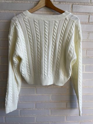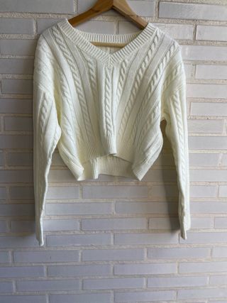 Jersey cuello V beige -Es un jersey corto -Diseño liso y trenzado -Es un jersey fresco , no abrigado , perfecto para primavera