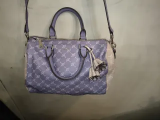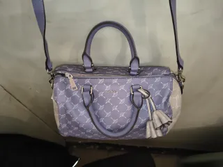 Bolso de la marca JOOP con un diseño estampado. - Color principal: morado con estampado blanco. - Paneles laterales en color beige. - Dos asas cortas. - Correa de hombro ajustable y extraíble. - Cierre de cremallera. - Dos adornos colgantes con forma de flor.