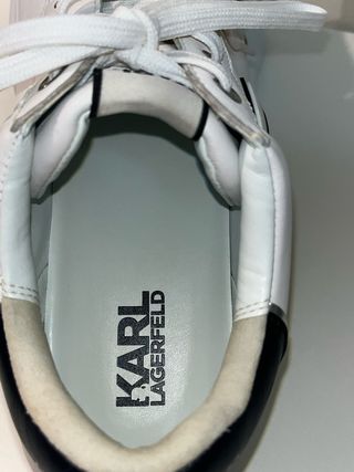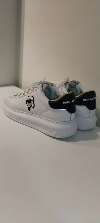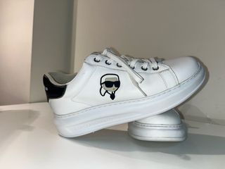 Zapatillas de la marca Karl Lagerfeld con un diseño moderno. - Combinación de blanco y negro. - Detalle de personaje icónico en el lateral. - Suela gruesa. no des likes si no vas a comprar