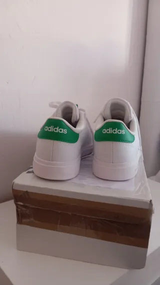 Diseño muy moderno muy cómodas nuevas a estrenar con un pequeño desperfecto en la lengua que no afecta a nada se ve en la última se ve en la última