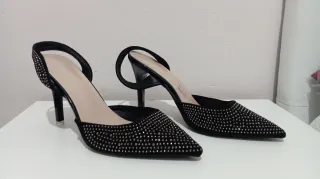 Tacones negros con pedrería