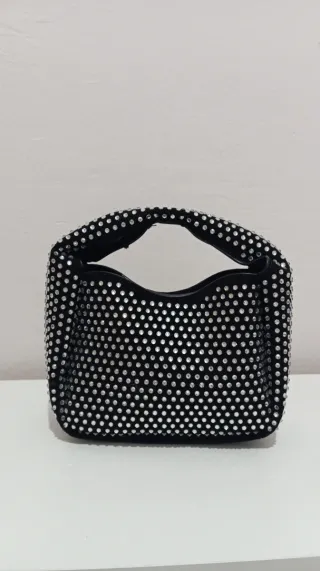 Bolso negro con pedrería plateada