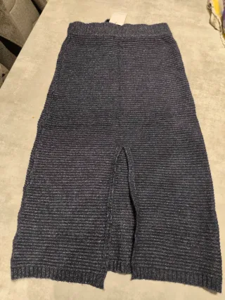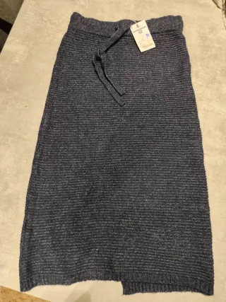 Falda larga de punto con un diseño modero. Es cómoda y versátil. Cintura con cordón ajustable.