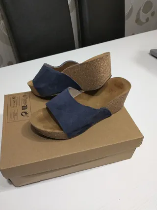 Chanclas de piel azul marino talla 38