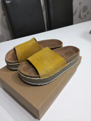 Chanclas piel mostaza talla 38