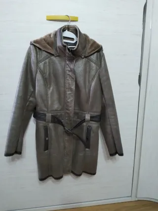 Abrigo de invierno con cinturón. - Diseño elegante y moderno. - Capucha con forro de pelo. - Cierre de cremallera y botones. - Bolsillos laterales.