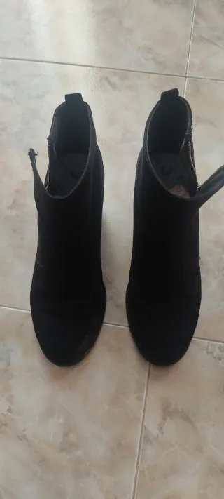 Botas de tacón estilo botín. - Material exterior de ante. - Cierre lateral con cremallera.