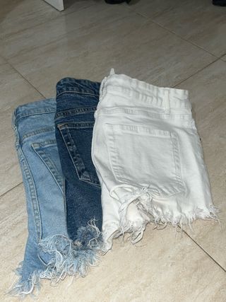 pack de tres pantalones cortos vaqueros con un estilo roto - Un par en tono azul claro. - Un par en tono azul oscuro. - Un par en tono blanco. todas son talla 36 no des Like si no vas a comprar