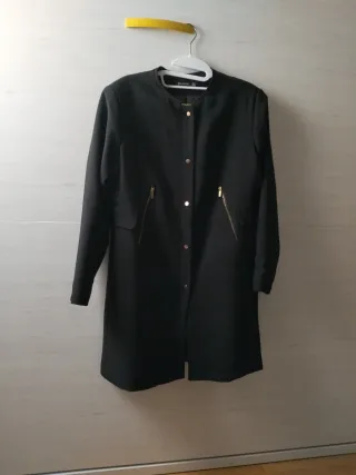Elegante blazer negro de entretiempo Stradivarius. - Diseño moderno con cuello redondo y forro - Cierre de botones dorados. - Bolsillos frontales con cremallera dorada.