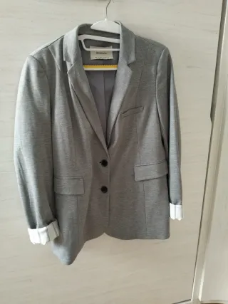 Blazer gris de Stradivarius. - Cierre de dos botones. - Bolsillos frontales. - Puños con detalle de rayas.
