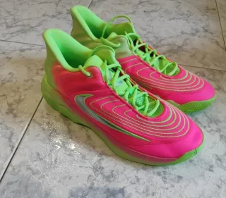 Zapatillas de baloncesto Nike Giannis Immortality 4. Nuevas a estrenar - Diseño vibrante en rosa y verde neón. - Detalles de líneas curvas en la parte superior. - Swoosh plateado en el lateral.
