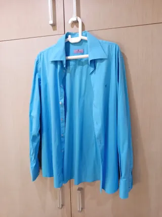 Camisa de manga larga de la marca Springfield. Es una prenda clásica y versátil. - Color azul. - Cuello camisero.