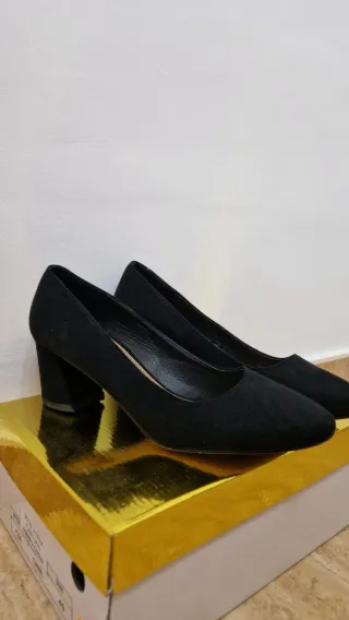 Elegantes zapatos de tacón con un diseño clásico. Tacón grueso y cuadrado. Solo me los he puesto una vez para una boda.