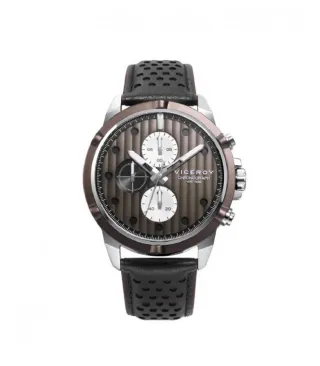 Reloj Viceroy para hombre con caja de acero inoxidable y correa de piel negra y marrón. Este reloj referencia 471331-47 Viceroy lleva una caja de 43 mm de diámetro aproximadamente y esfera marrón con cronógrafo. Resistencia al agua 100 metros.