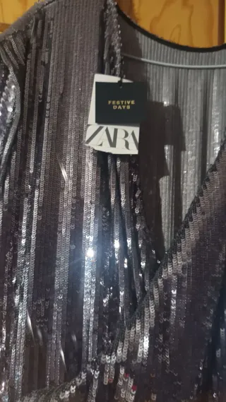 Vestido de fiesta plateado lentejuelas