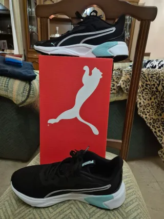 Zapatillas Puma en color negro, ideales para entrenamiento y caminar. Embalaje original y sin usar en exterior. - Diseño deportivo. - Malla para que transpire mejor - Logo Puma en la lengüeta y lateral.