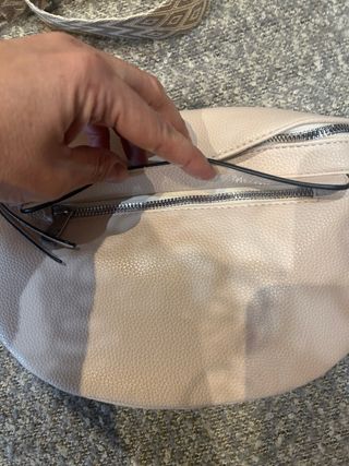 Riñonera beige con correa multicolor