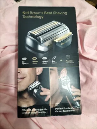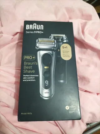 Afeitadora profesional Braun Series 9 PRO+ en color negro y plateado. Incluye 5 elementos ProShave y 1 ProTrimmer de precisión. Sin abrir. - Incluye soporte de carga.