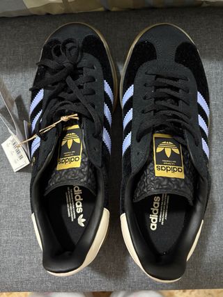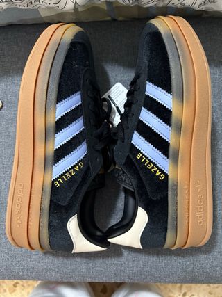 Zapatillas Adidas Gazelle Bold con un diseño llamativo. Esta talla la tengo sin etiquetas! - terciopelo negro y detalles en azul. - Suela de goma. - Cierre de cordones.