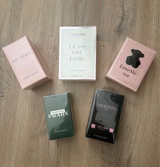 TOUS: 30 ml 30€ LANCOME: 50 ml 60€ VALENTINO: 50 ml 55€ PRADA: 50 ml 60€ GIORGIO ARMANI: 90 ml 87€