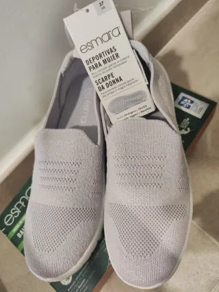 Zapatillas deportivas de la marca Esmara en color beige y talla 37. Son muy cómodas gracias a su material exterior de punto transpirable. - Exterior de punto transpirable. - Suela ultraligera y flexible.