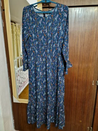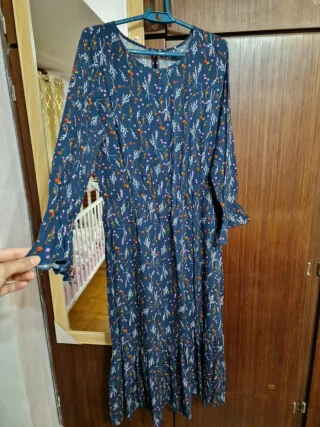 Vestido largo de tela suave con un bonito estampado floral. - Diseño de manga larga. - Cintura elástica. - Bajo con volante.