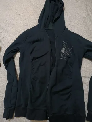 Chaqueta con capucha y cremallera. - Diseño con dibujo de Tinkerbell en la parte delantera. - Puños y bajo elásticos. - Detalle fruncido en los laterales.