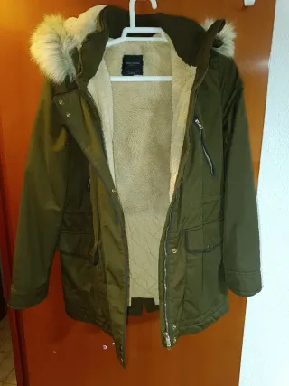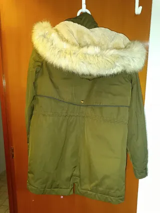 Chaqueta de color verde con forro interior de pelo y capucha. - Cierre de cremallera. - Bolsillos frontales. - Detalle de pelo en la capucha.