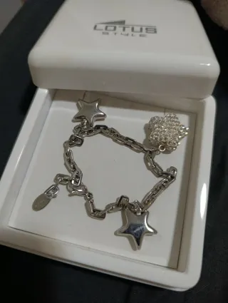 Elegante pulsera de la marca Lotus, con un diseño moderno y detalles de estrellas. - Acabado en acero. - Diseño con varios charms de estrellas. - Incluye un charm con forma de flor adornado con pequeñas piedras brillantes.