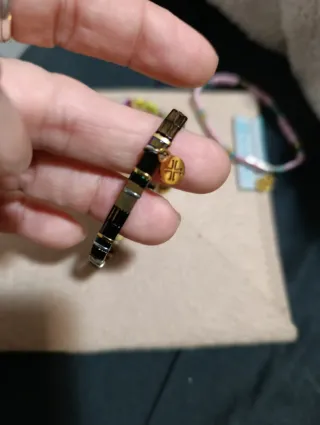 Elegante pulsera de la marca Anartxy con un diseño moderno. - Combina cuentas negras y detalles dorados. - Cuenta con un charm colgante con el logo de la marca.