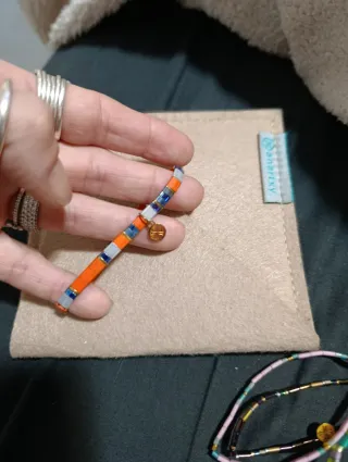 Pulsera de la marca Anartxy con un diseño de cuentas. - Cuentas de colores naranja y azul. - Detalle de charm dorado.