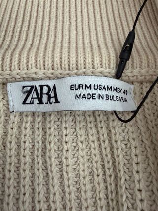 Jersey de punto de la marca Zara, talla M. Aún conserva la etiqueta y está sin estrenar. En rienda actualmente cuesta 40€. - Color beige/crudo. - Cuello alto con cremallera. - Tejido de canalé.