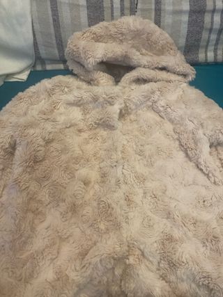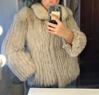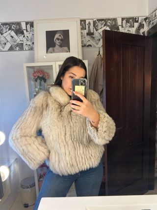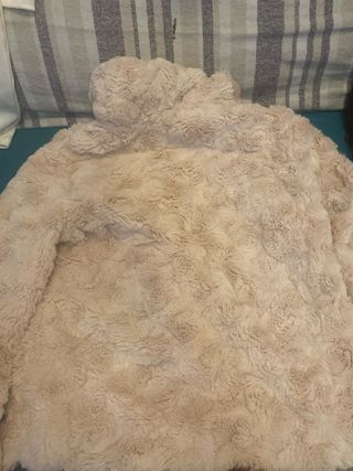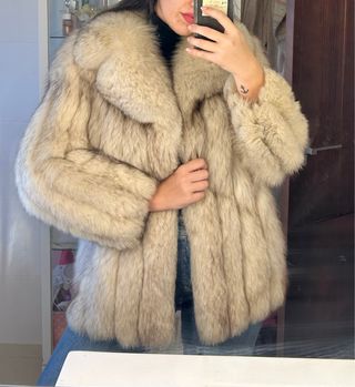 Abrigo de pelo/piel beige. Tiene unas manchitas pequeñas en el forro que indico en las fotos. El resto del fotro esta perfecto y la piel también. “ Imitación zorro”. Más información por privado.