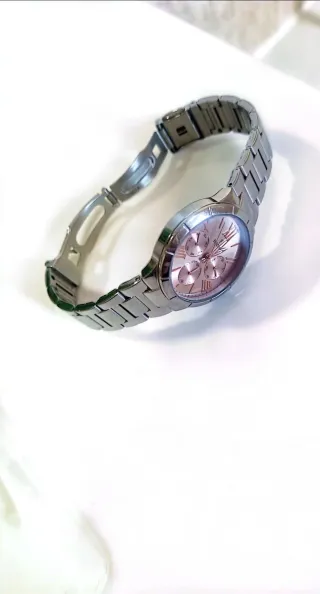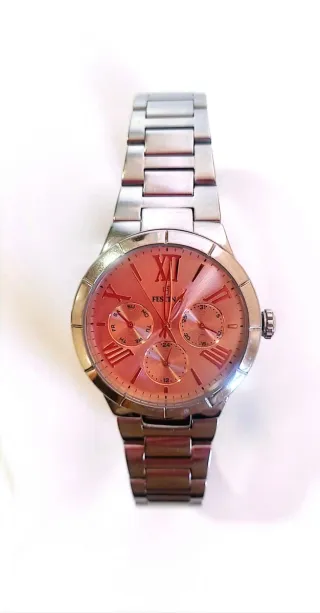 Se vende reloj de mujer de la marca Festina con la esfera rosa en perfecto estado por falta de uso. - Reloj analógico - Correa de acero inoxidable - Esfera color oro rosa con números romanos - Resistente al agua 50 m y cristal mineral - 19 cms de muñeca - Precio original 119 €.
